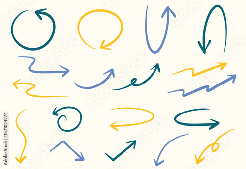 丸みのある黄色矢印セット 上昇・曲線・ジグザグ