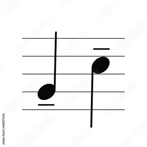 Tenuto symbol on staff flat vector isolated on white background. Articulation marks. Musical symbol. Musical notation. Flashcard for learning music.