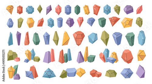 Elegant collection of colorful faceted gemstones in various shapes and cuts for luxury design projects and jewelry concepts, isolated on white background