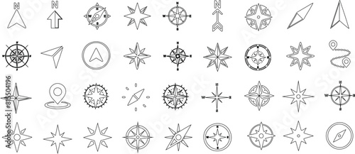 Navigation Icons Collection. GPS Markers, Maps, Compasses, Flags, Location Pins, Arrows, Play Buttons, Travel Symbols, Directional Guides, Black-and-White Vector Set