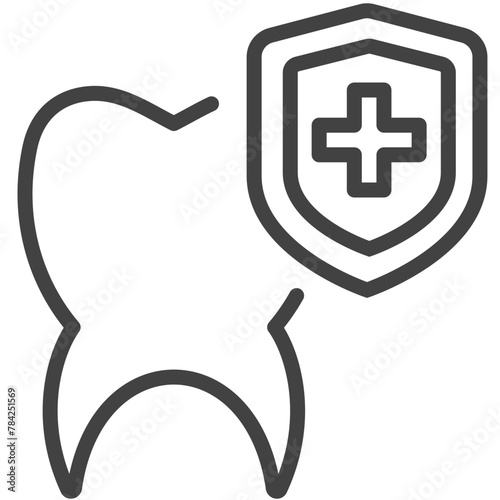 Illustration of a tooth with a shield overlay and a check mark indicating protection and dental health care