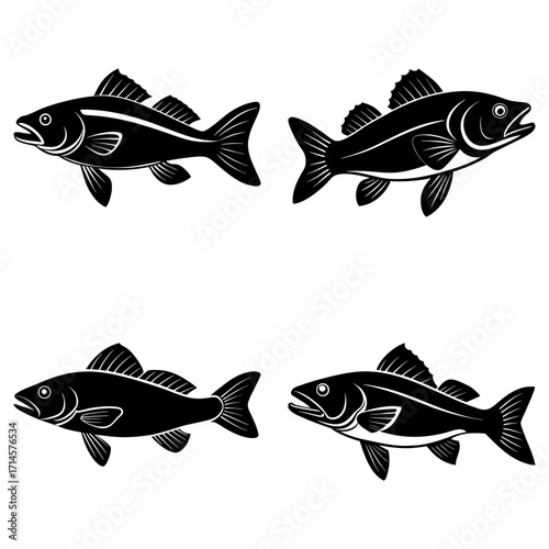 Elegant collection of stylized fish silhouettes, perfect for seafood branding, nautical designs, restaurant menus, and creative aquatic themes originally vector graphics