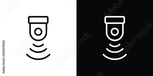 Motion detector icon featuring a sensor device emitting curved signal waves, symbolizing movement detection, security monitoring, and smart home automation.