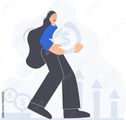 Success in the enterprise lies in a well-established economy and in the technical process, job, girl, lady, woman, development, vector illustration, office, work, business
