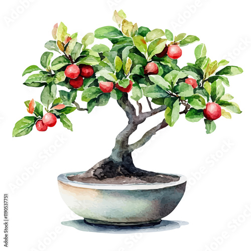 Cartoon Bonsai Tree in a Pot Illustration: A Symbol of Serenity and Miniature Beauty