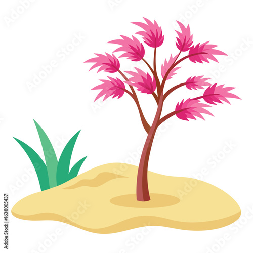 Tamarisk shrubs near a salt lake in a desert, Plant Vector Graphic