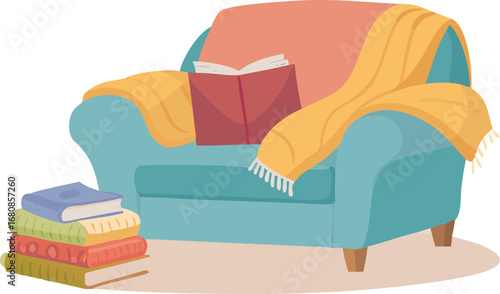 Stylized illustration of a chocolate chip cookie with a few additional crumbs