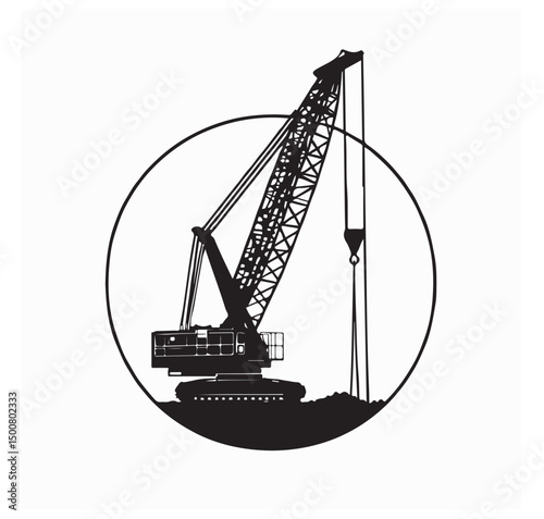 Crane Truck Lifting Large Pipe Line Art Illustration