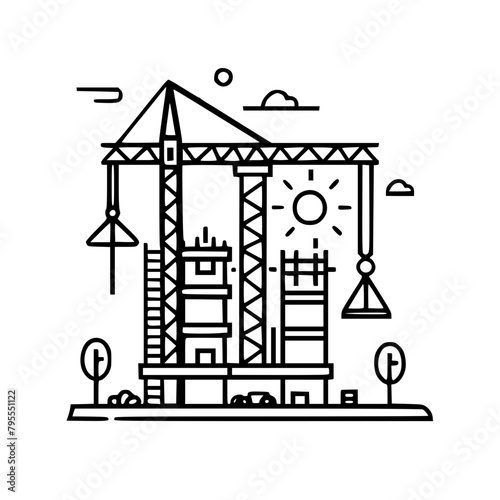 Tower crane in construction site, construction cran and crane, graphic design. Construction, building and constructing, vector design and illustration