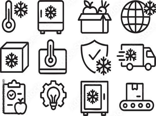 simple outline stroke icon isolated on white background cold room door seal temperature logging device freezer safe racking floor mounted sensor backup cooling unit frost resistant lighting