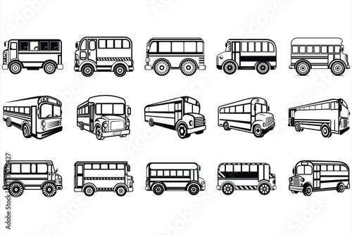 Minimalist Travel Bus Icons – Vintage Line Art Vehicle Vector Set