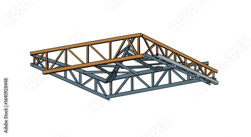 Wood Frame Roof Truss Diagram With Metal Connectors For Construction Illustration Residential Building Structure Engineering