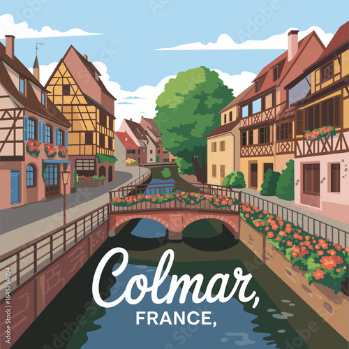 Colorful half timbered houses line charming street, showcasing unique architectural styles