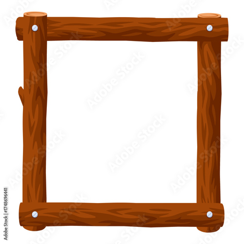 Drawing wooden frame step by step. Tree branch frame for game, print, education or more design