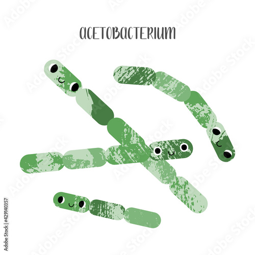 Vector illustration of microbiome bacteria, beneficial and pathogenic intestinal flora.