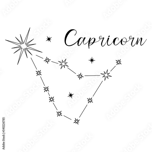 Zodiac sign. Capricorn constellation. Astrological horoscope stars simple structure. Esoteric celestial abstract black symbol. Astrology calendar. Vector zodiacal isolated line scheme icon