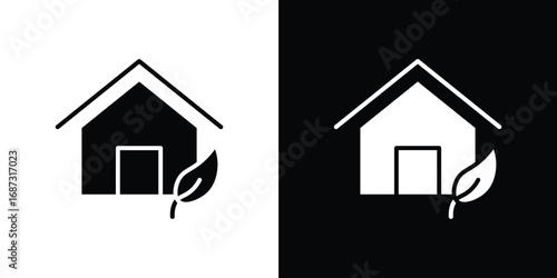 Black and white minimal leaf icon set nature and ecology concept