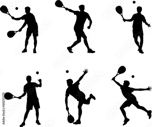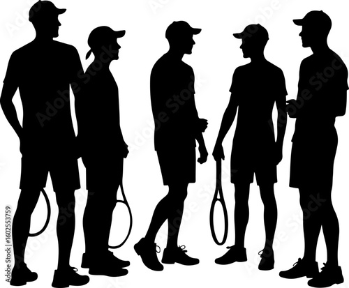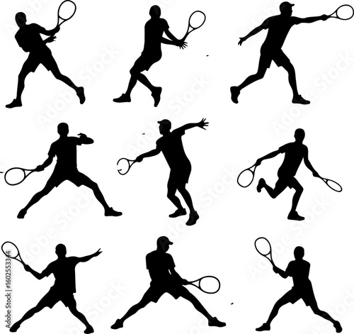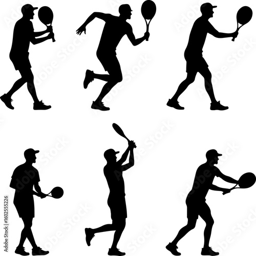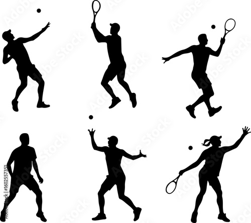 A set of  men and women tennis players silhouette on white background. Vector illustration