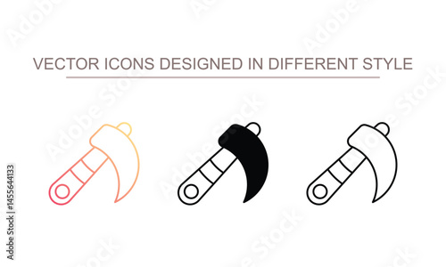Scythe icon set vector on white background,  harvest, tool, weapon, symbol.