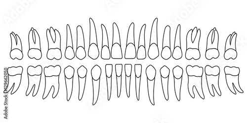 Zestaw zębów, poziomy niszczenia zęba. Prosta grafika, wector ilustracja Ai / EPS 10