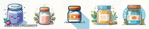 Vector icon marmalade jar autumn same pose same proportions four styles black solid glyph outline minimal flat multicolor filled cartoon flat shaded.