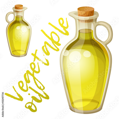 Illustration on theme liquid oil in large glass bottle for cooking food