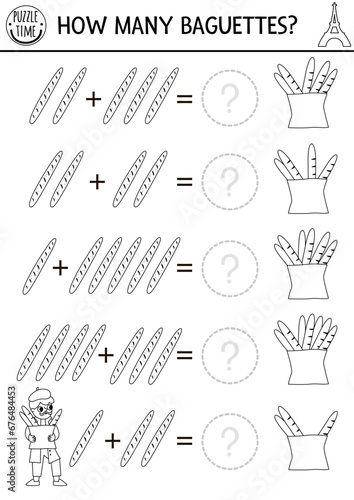 How many cars black and white game. Transportation math addition activity for preschool children. Line transport printable counting worksheet or coloring page for kids with cute tow truck.