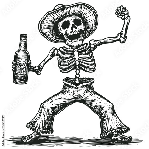 A vibrant collection of Mexican cultural icons including sombreros sugar skulls a guitar maracas and a cactus for fiesta designs.
