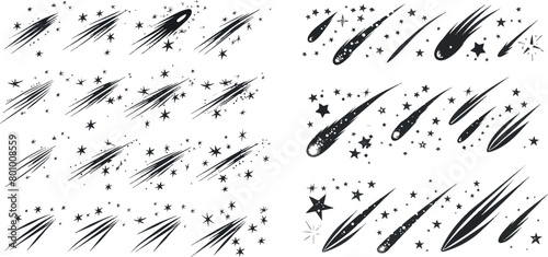 Stars on a white background. Black star shooting with an elegant star.Meteoroid, comet, asteroid, stars.