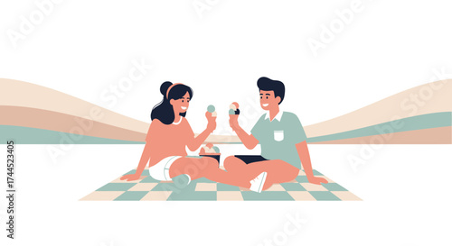 Flat style illustration of a couple peacefully sleeping together in bed, representing love, comfort, relaxation, and emotional connection in a cozy home bedroom environment