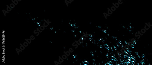 Blue water bubbles rising diagonally on a dark background. Vector illustration.