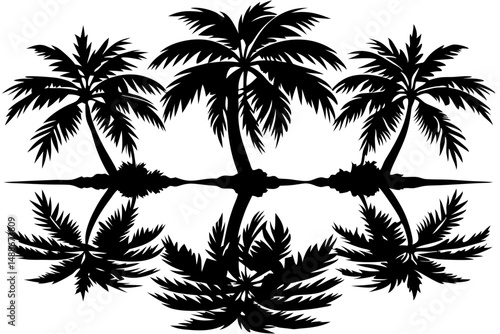 Reflected palm tree silhouette simple tropical design on white background, silhouette, palm tree, reflection, water, tropical, island, beach, vector, design, graphic, isolated, simple, minimalist, nat