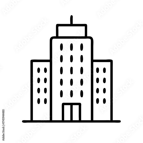 Black and white mountain peak landscape with waterfall drawing vector illustration for adventure seekers