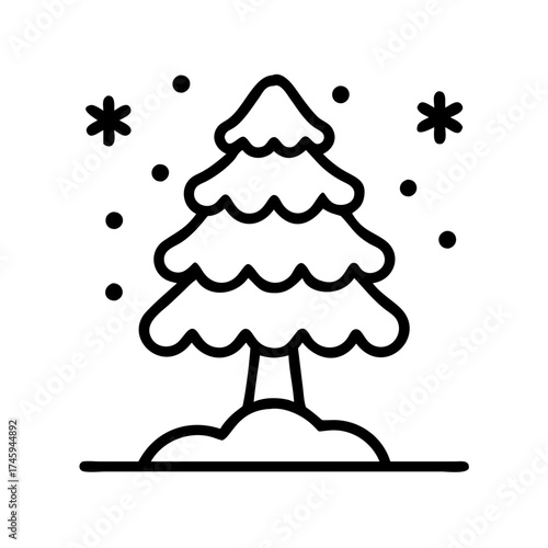 Minimalist winter landscape drawing with pine trees and monolith for art print and wall decor design