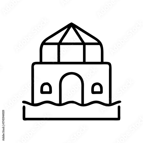 Minimalist landscape drawing circle portal nature illustration black and white scenic art design vector
