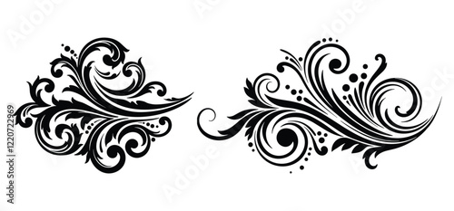 Collection of Ornate Decorative Flourishes and Borders in Black and White.