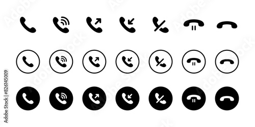Call icons. Phone call icons accept and decline. Incoming and outgoing call icons. Vector illustration