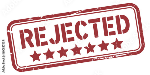 Red Rejected Stamp Design with Stars and Grunge Texture on White Background