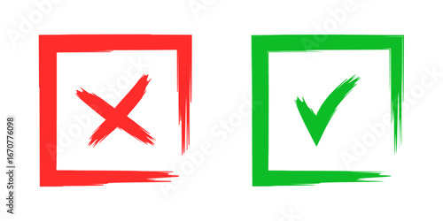 Red Cross Square, Green Check Square, Correct Wrong Symbol, Approval Mark Icon