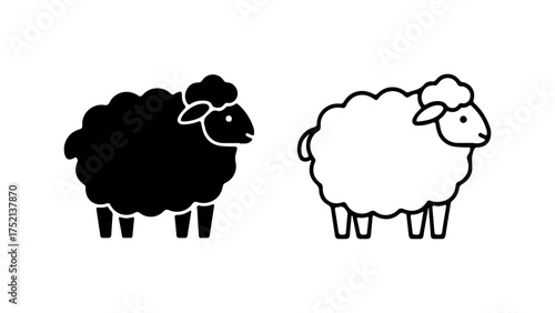 A black sheep silhouette and a white sheep outline icon, side by side on a plain background.