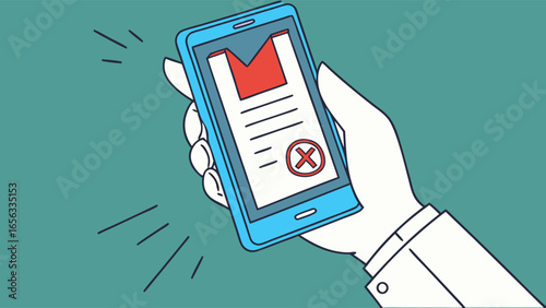 Hand Holding Smartphone with Rejected Document.
