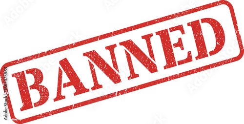 A red rubber stamp with the word Banned on a white background on transparent background
