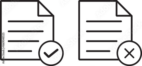 Clipboard icon vector with checkmark. Approved and Rejected Document Icons – Validation Symbol Vector Set.
