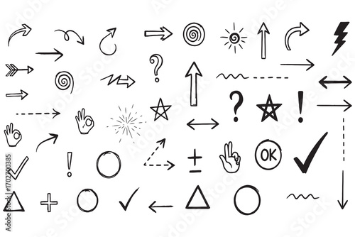 Collection of hand-drawn doodle arrows symbols and icons for design projects