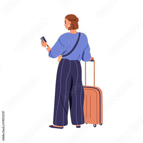 Travel people. Airport tourist baggage crowd passengers check passport control terminal queue. People with luggage vector set