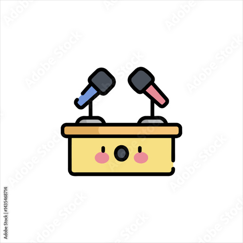 Open Mic sign and microphone isolated on white background. Fun flat style drawing. Stand-up party live event poster. Comedy or poetry show flyer design. Colorful hand drawn vector illustration