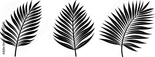 Tropical leaf silhouettes set, botanical foliage graphics, palm leaf vector icons, exotic plant shapes, nature design elements, black leaf collection