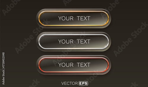 Modern transparent frame with 3d glass button shapes for ui design and morphism style. Glossy interface elements highlight smooth button concept and glass morphism aesthetics.
