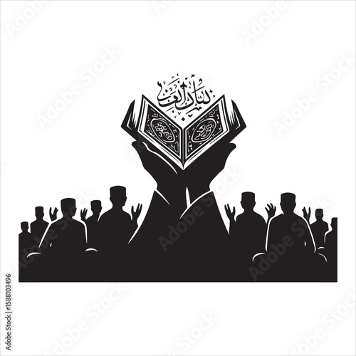 Black silhouette vector design of a holy book on a traditional rehal stand graphic icon
