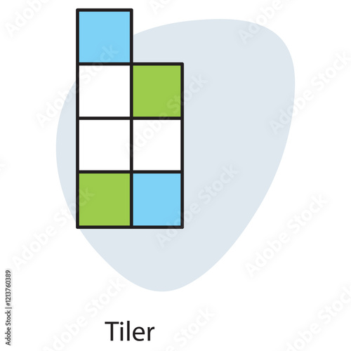 Vector illustration blue ceramic tiles installing with adhesive. Tiles and tile adhesive icon in flat cartoon style. Tile glue for laying tiles on floors and walls. Ceramic tiles logo template.